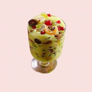 Fruit Custard is a Delicious creamy and rich chilled dessert made with custard powder, milk, seasonal fruits and nuts.